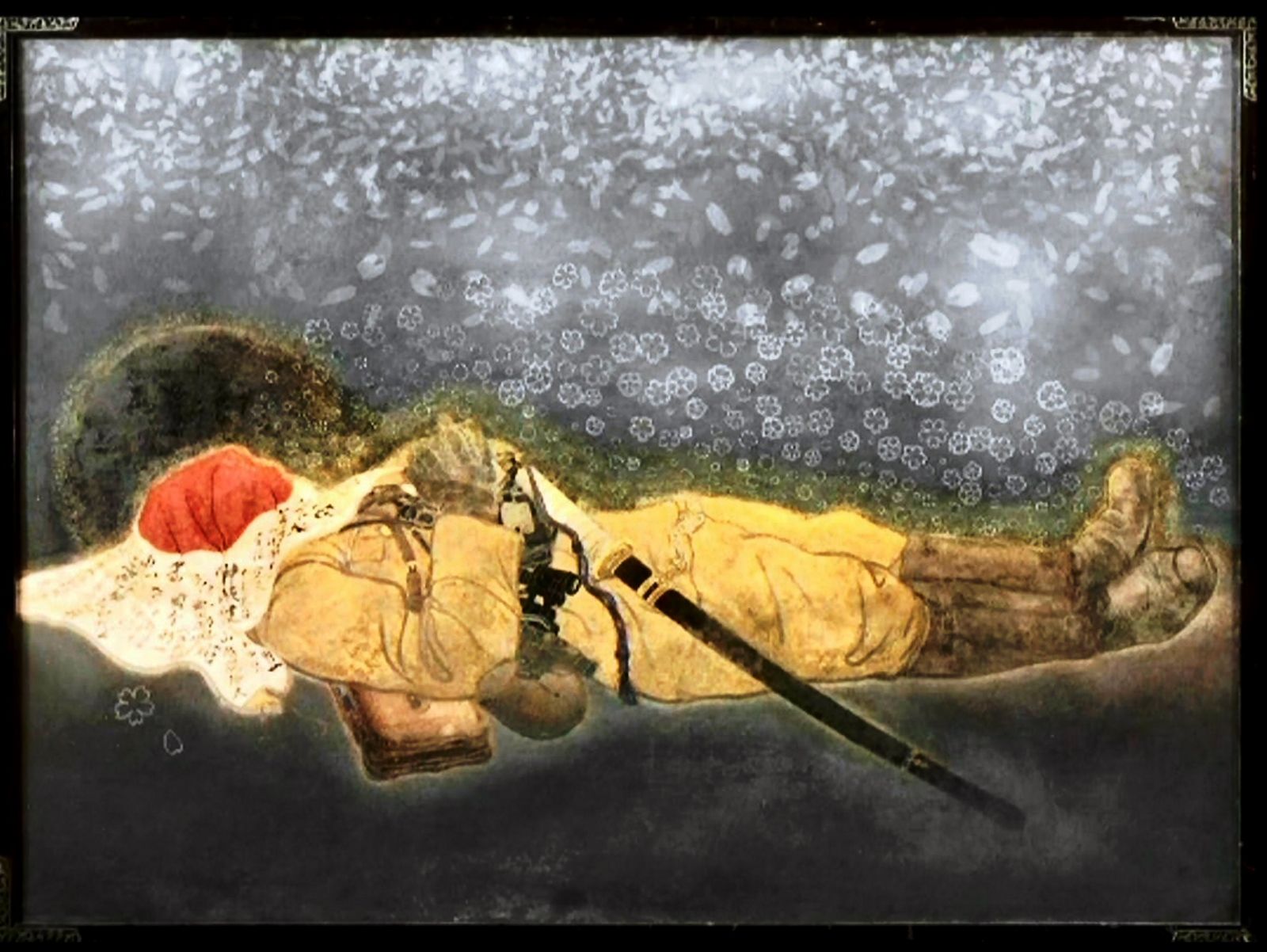 それでも秋聲は背景の桜を黒く塗りつぶしました。桜に込められた死の賛美を許せなかったようです。
